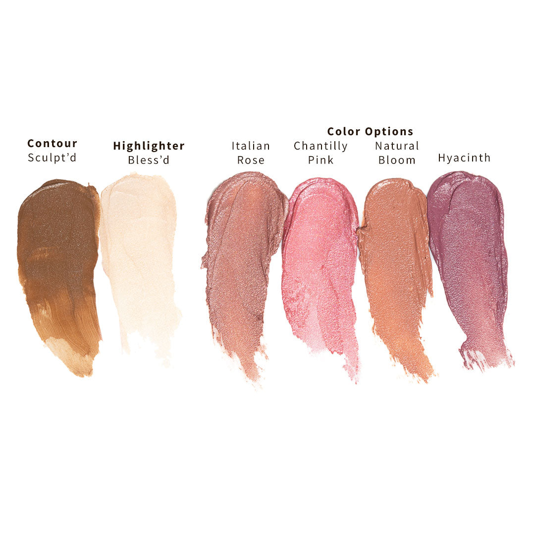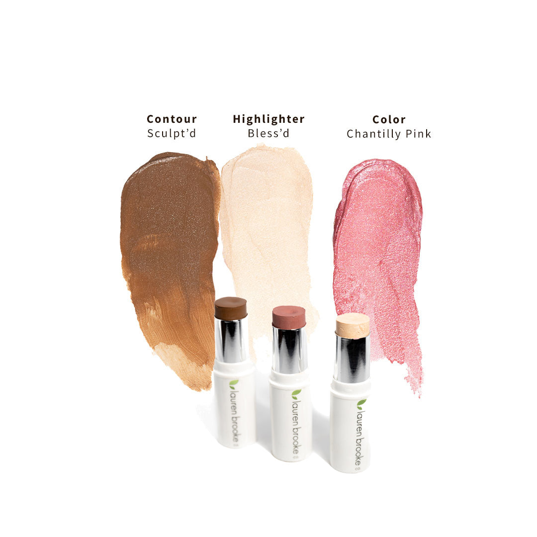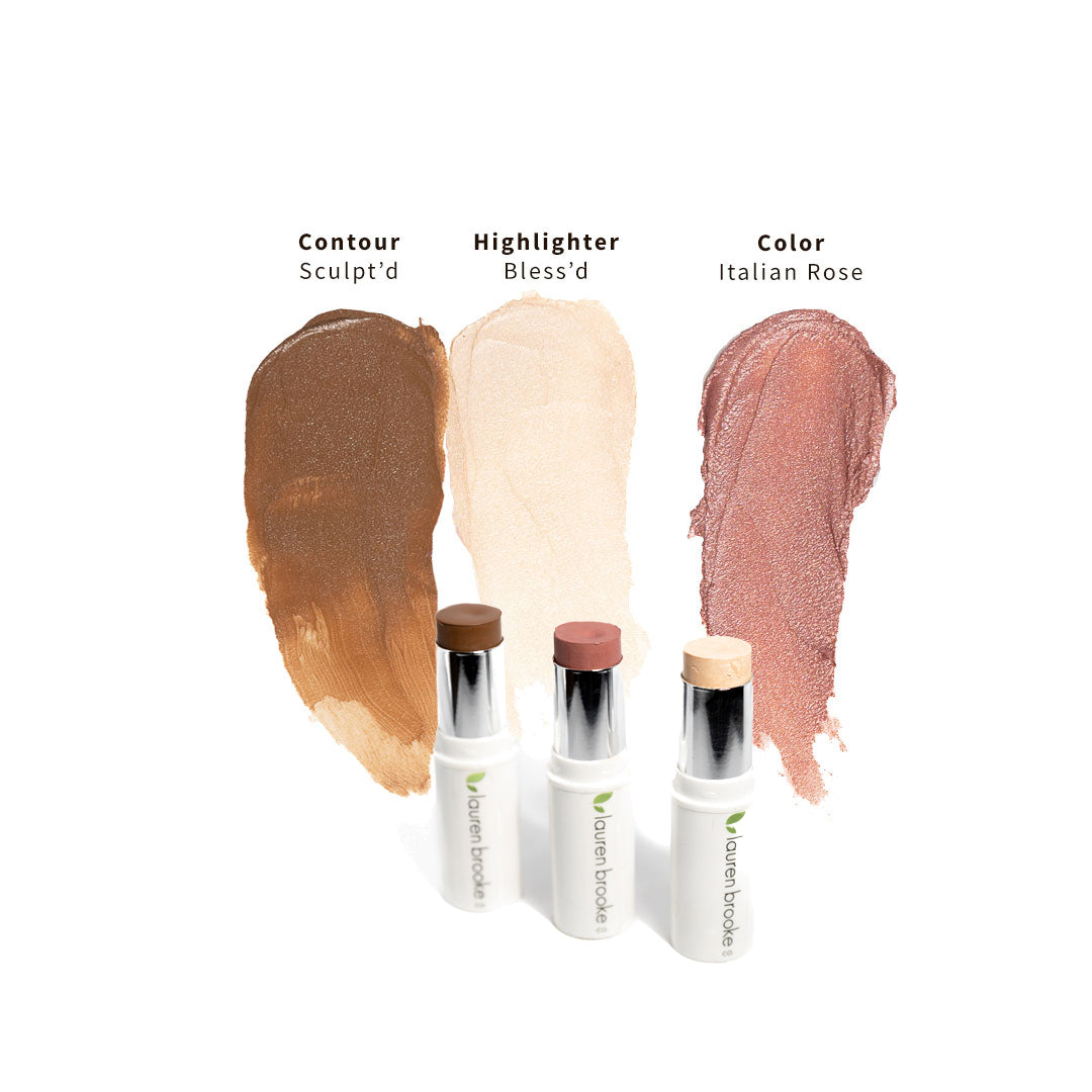 Each Botanical Stick Trio Kit comes with highlighter & contour along with your choice of the following color options: